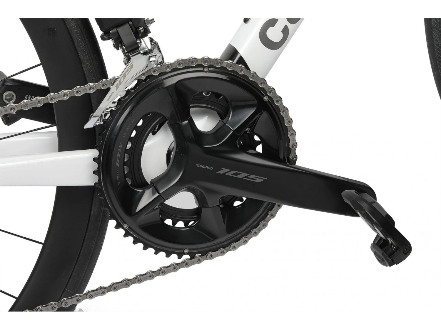 Vélo de course équipé de la nouvelle transmission Shimano 105 Di2 en 12 vitesses.