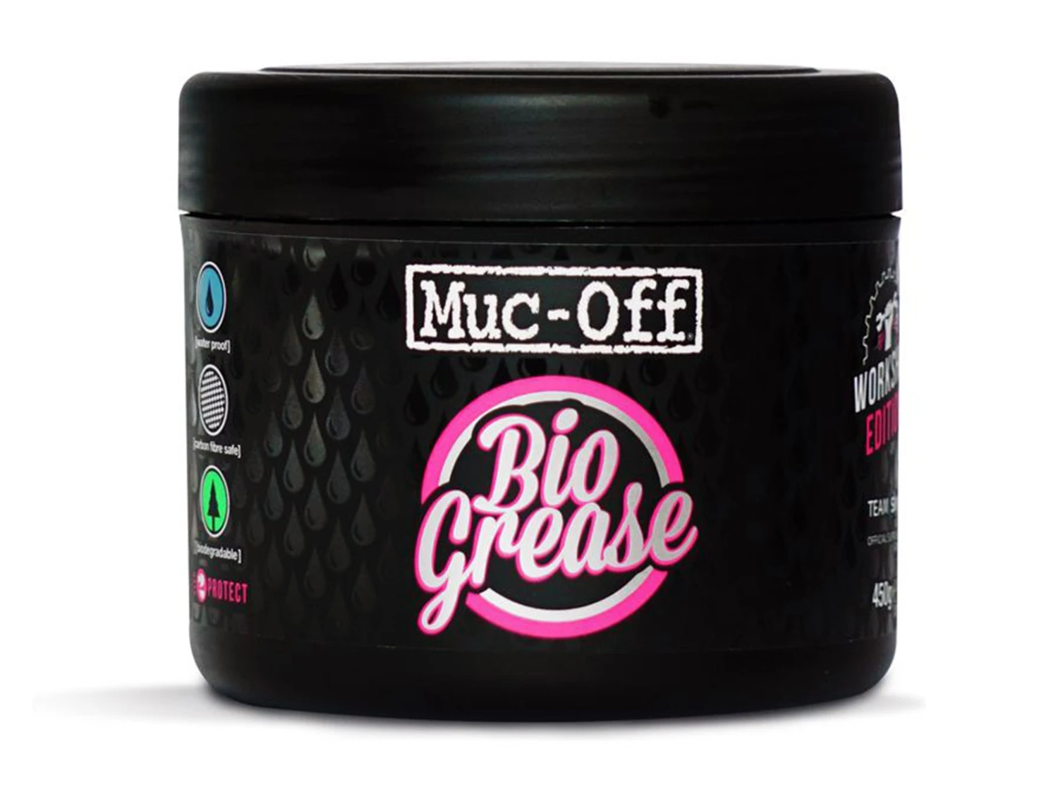 La graisse biodégradable Muc-Off * est spécifiquement mélangée pour les applications uniques «à basse vitesse» que l’on trouve sur les pièces de vélo où la réduction du frottement est primordiale.